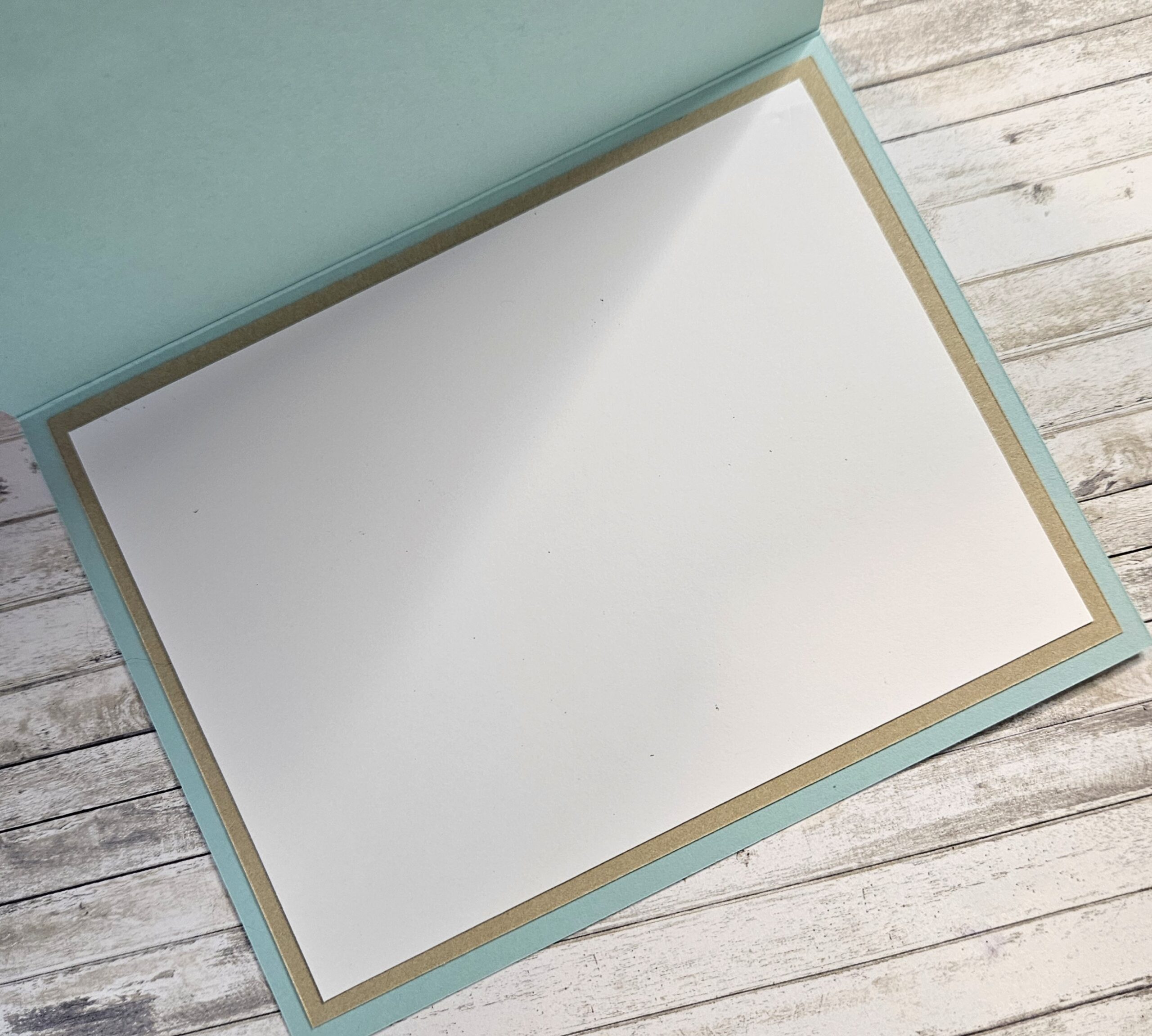 Azure cut to 4” x 5 ¼” and extra for die cutting and punching. You also need a piece cut to 2 ¾” x 5” for die cutting