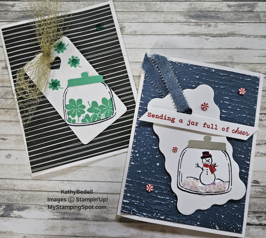 What is so great about these stamps? They both coordinate with one punch! One set is all occasion, and the other is holiday themed. Sweet Jar incorporates Valentines Day, St Paddy’s Day, birthday and more!