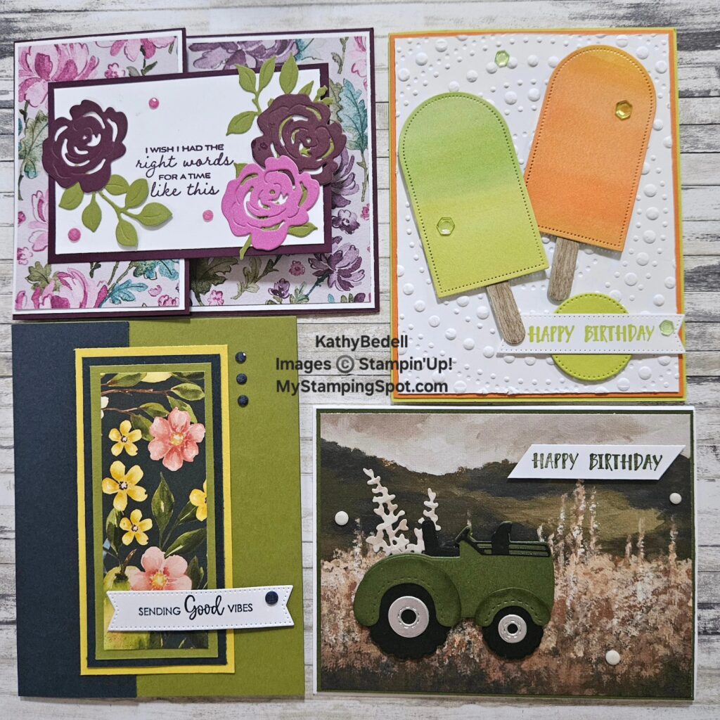 Two Toned 12 x 12 Misty Moonlight #166686 $10, Lovely Garden #165524 $12.50 each cut to 4″ x 5 1/4″