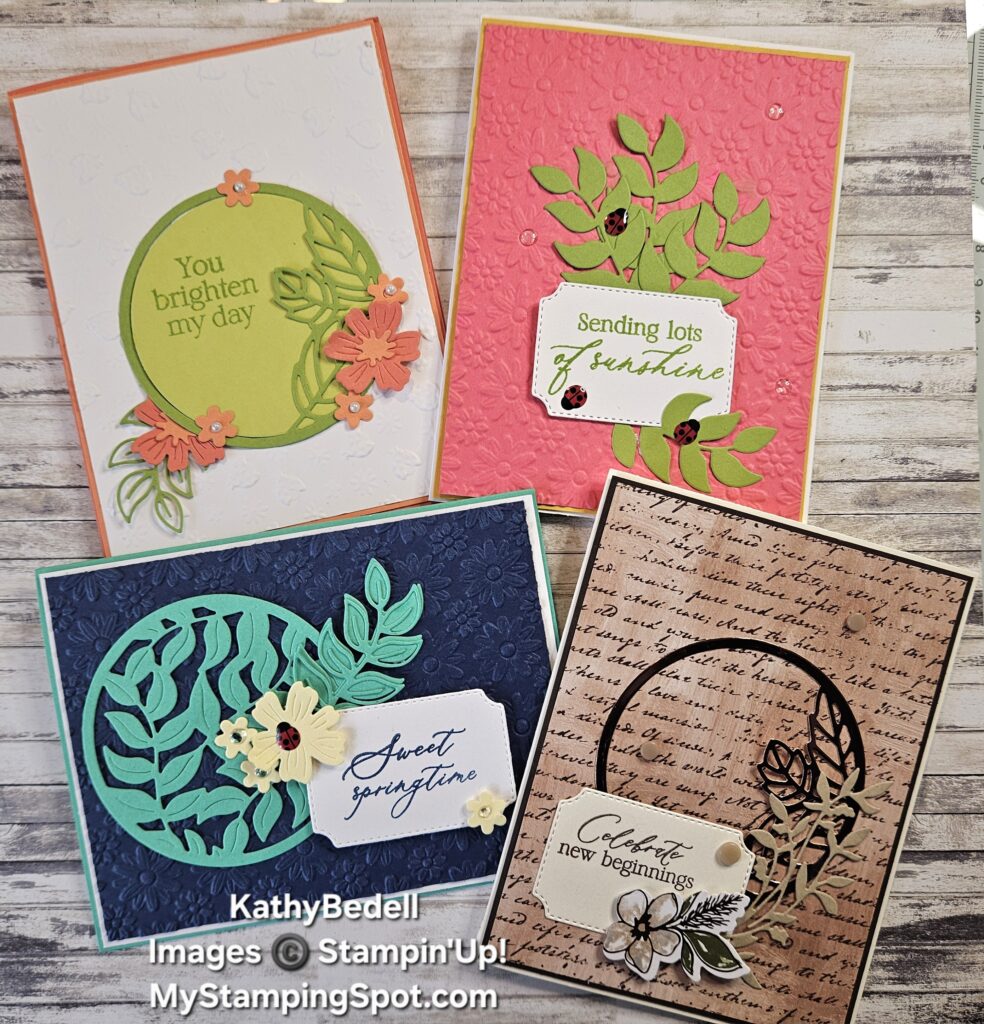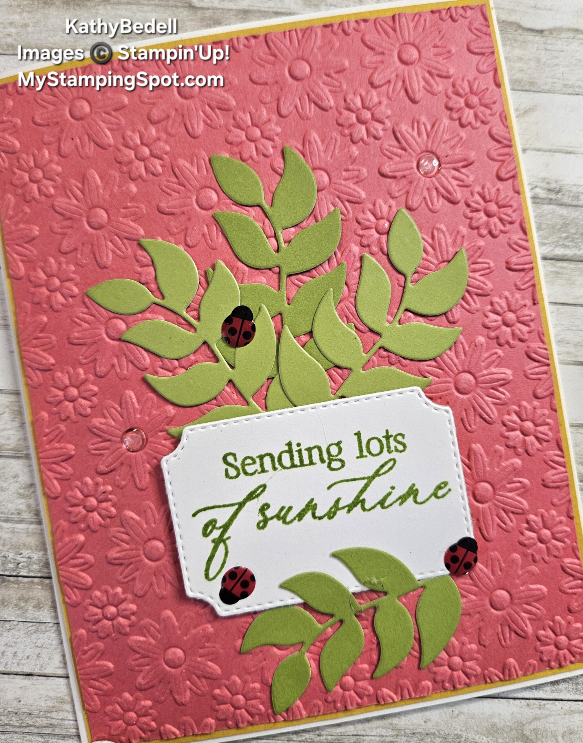 Accessories: Springtime Scenes Dies #167460 $39, Ladybug Garden Epoxy Shapes #167005 $8, Lazy daisy 3D Embossing Folder #167196 $11