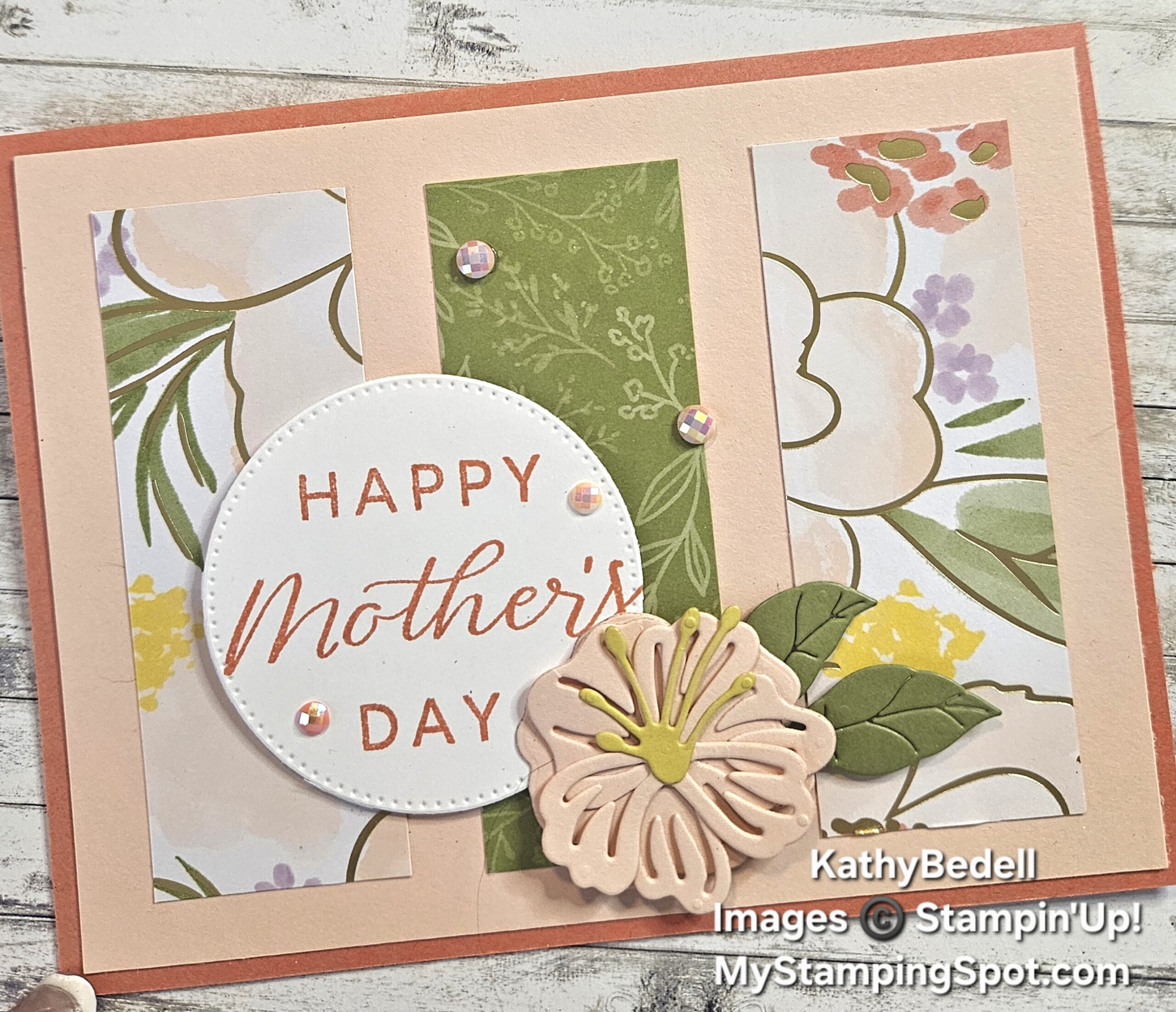 Accessories: Stylish Shapes Dies #159183 $30, Simply Beautiful Dies #166964 $38, Pearlized Faceted Circles #166978 $8, Lovely Arrangements Dies #167175 $34