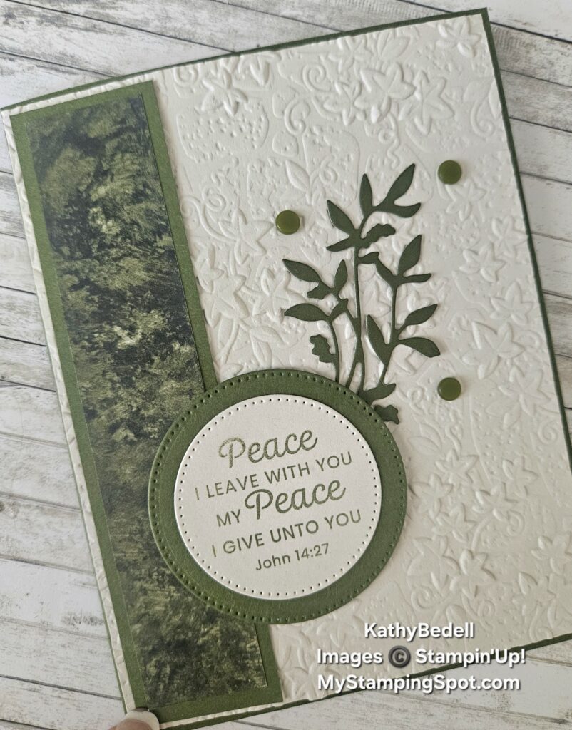Our first card today features a color combo that is a favorite of mine; Secret Sea and Shaded Spruce. A simple narrow strip of the DSP make this card so pretty!