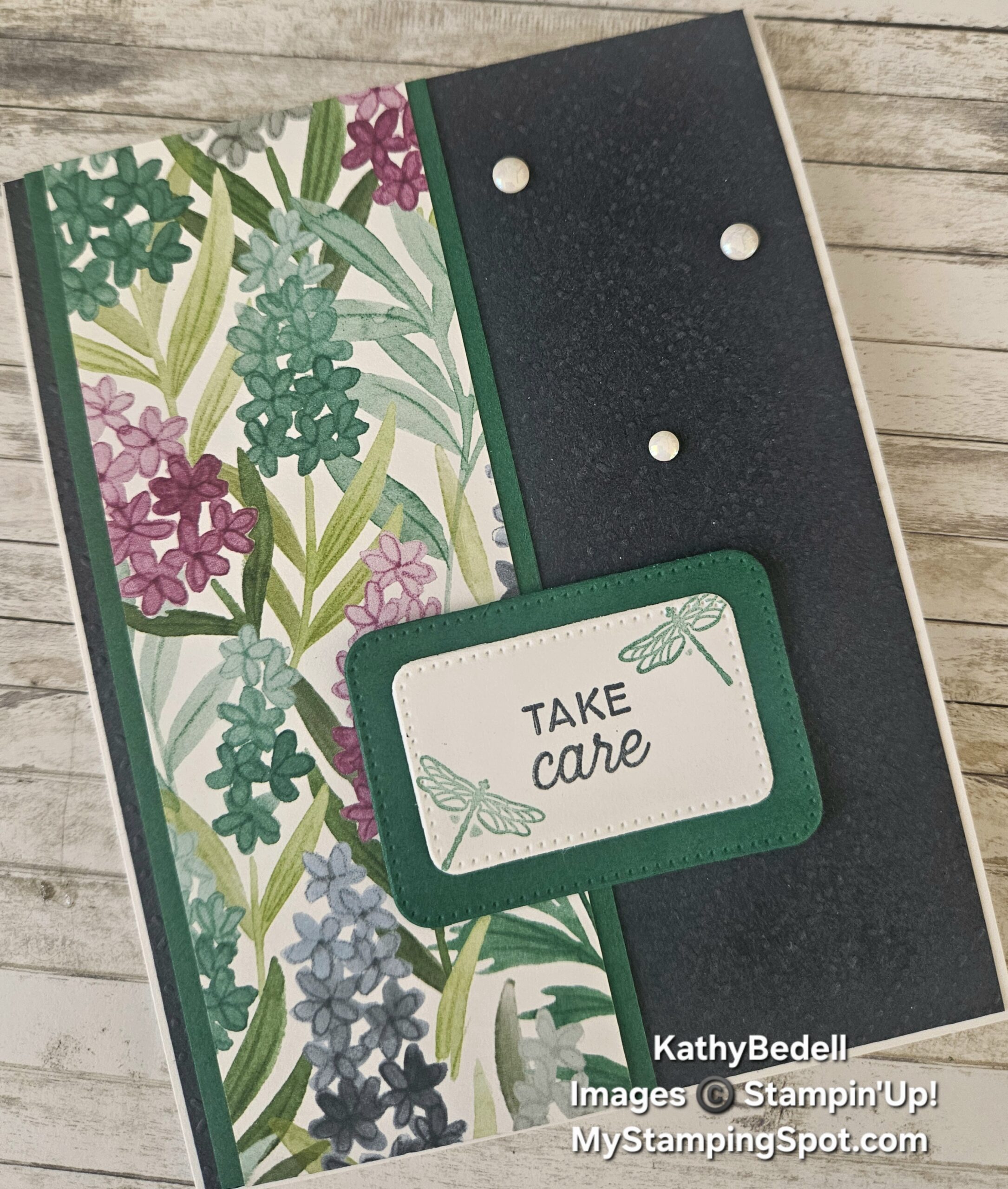 Florals In Bloom DSP #165175 $12.50 cut to 4” x 5 ¼” and a piece cut to 4” x ¾”