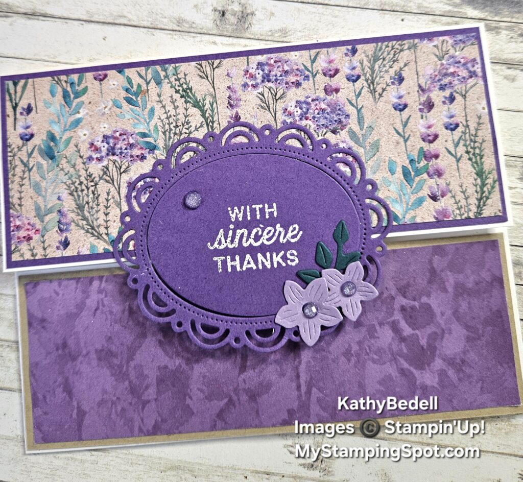 Gorgeous Grape cut to5 3/8” x 2 1/8”Perennial Lavender DSP #162593 $12.50 cut to 5 ¼” x 1 ¾” and a piece cut to 5 ¼” x 2”